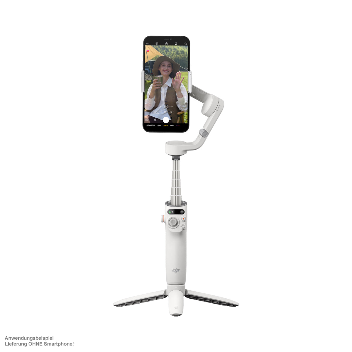 Mit dem integrierten Statusfeld können Sie bequem den Akkustand und den Systemstatus prüfen und zwischen vier Gimbal-Modi wechseln.